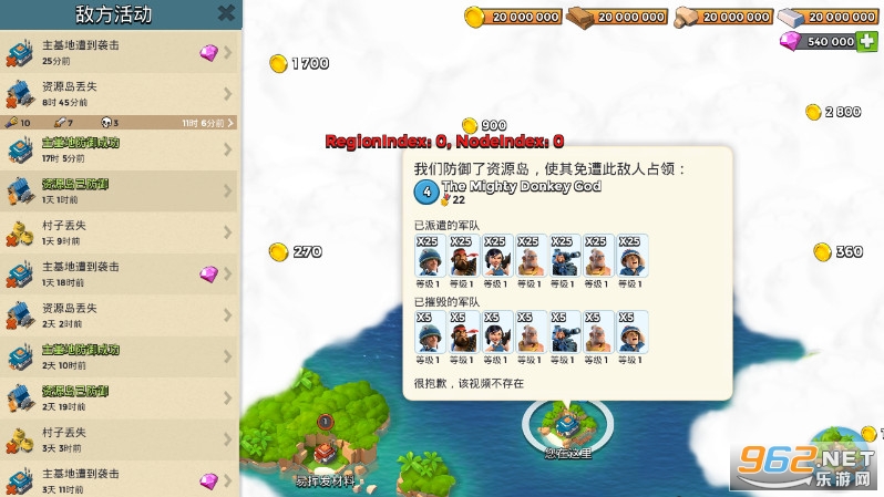 在你美丽的岛屿王国的另一端,还有一些邪恶的黑暗卫队在扰乱部落的生活,指挥我们的军队,打败这些入侵者,BOSS哈曼莫的司令部分散在地图的各个角落,击败他们能获得十分丰厚的资源、水晶、勋章。