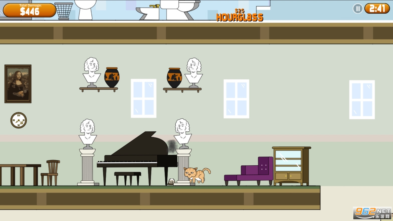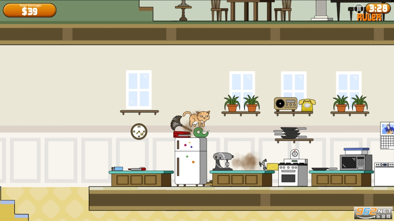 你是猫。 您的主人让您独自一人。 在回来之前,尽可能多地损坏。 摧毁四个层次 - 房屋,博物馆,学校和购物中心。