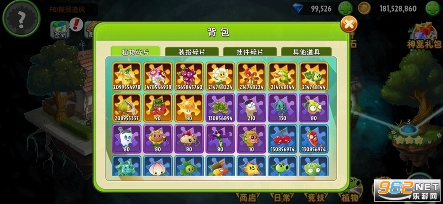 全植物满阶、2E金币、10W钻石、大量碎片、0阳光无冷却