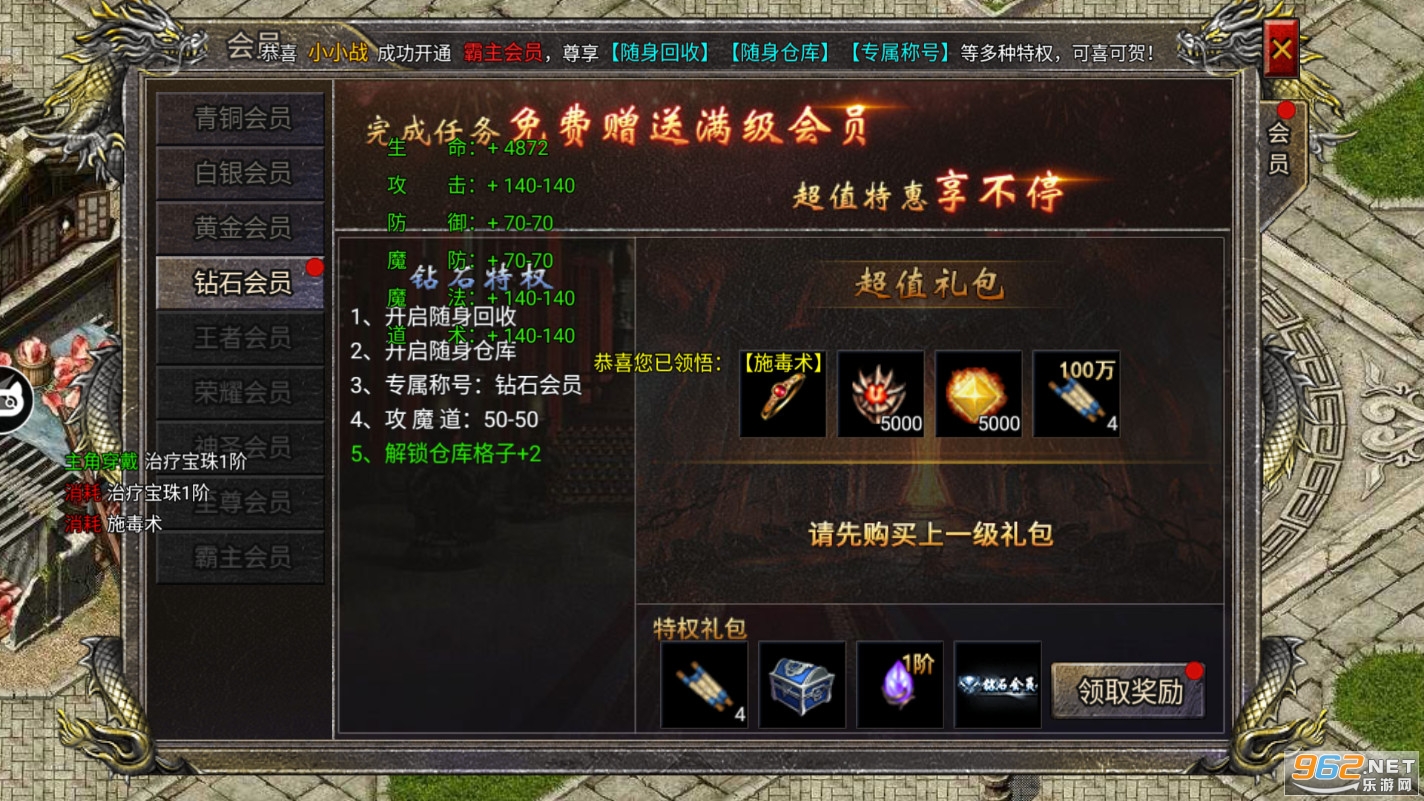 2.支持一键挂机,在挂机的同时,也能够增加自己的经验值,能过让自己快速的升级,只要等级越高,战斗力也就会越强。
