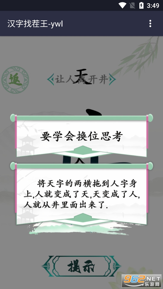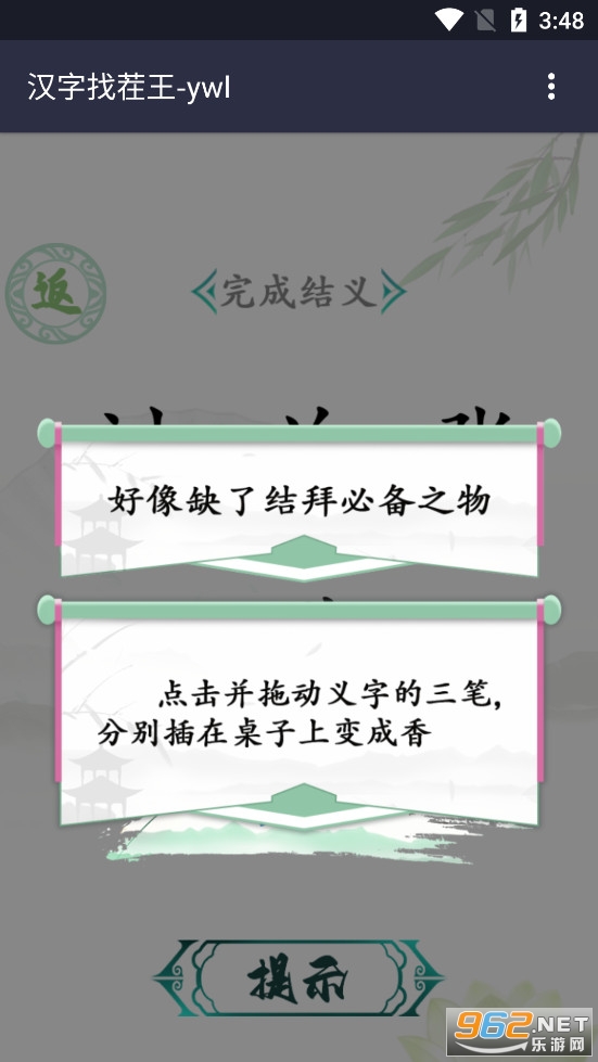 根据游戏提示尝试找出相应的汉字完成挑战,休闲游戏规则搭配趣味益智元素打造了休闲快感;
