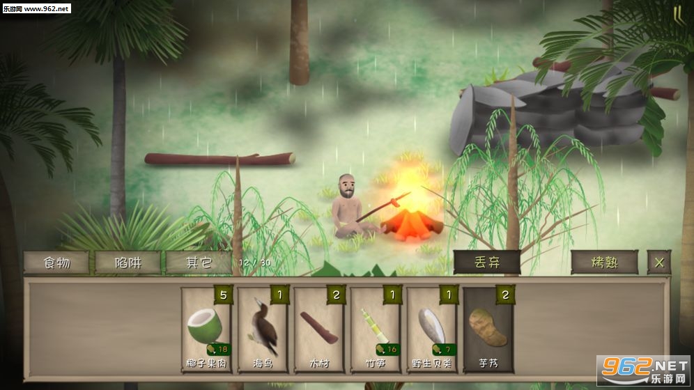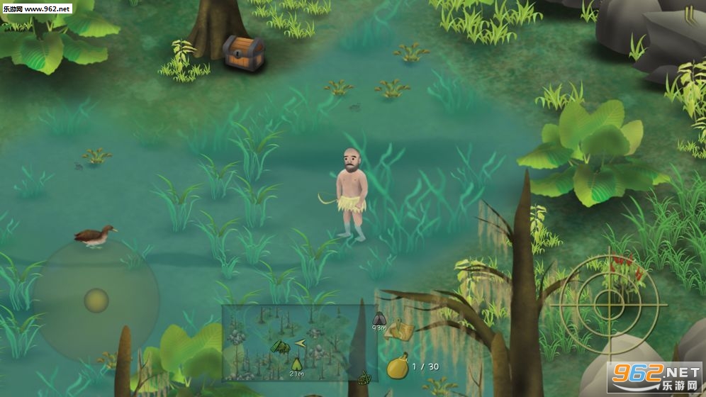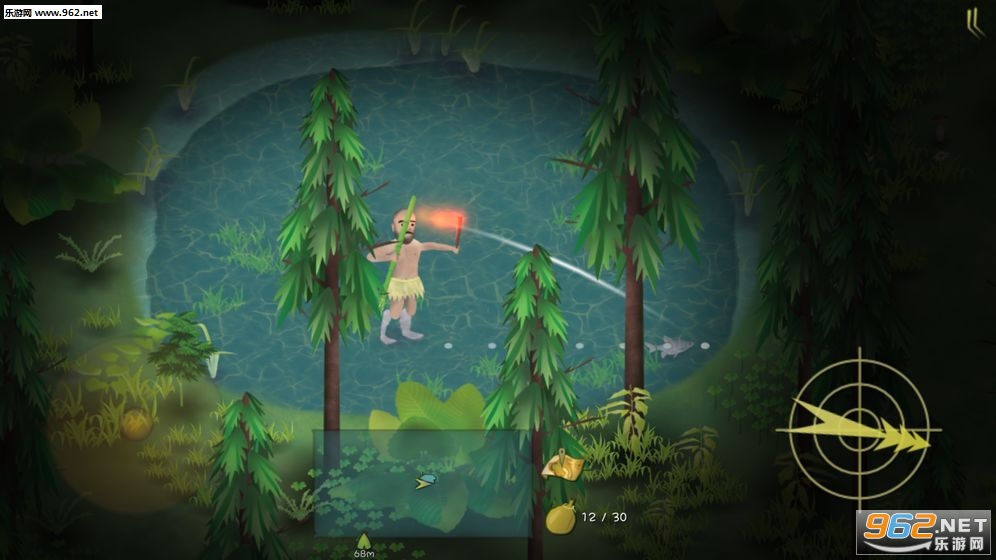 游戏中有不少投掷类工具,石头,竹叉,弓箭。有时候你会碰到一些猎物,如草原上的兔子,池塘里的鱼。你需要用你的投掷工具瞄准猎物进行猎杀,当然不同的猎物需要不同的投掷工具。