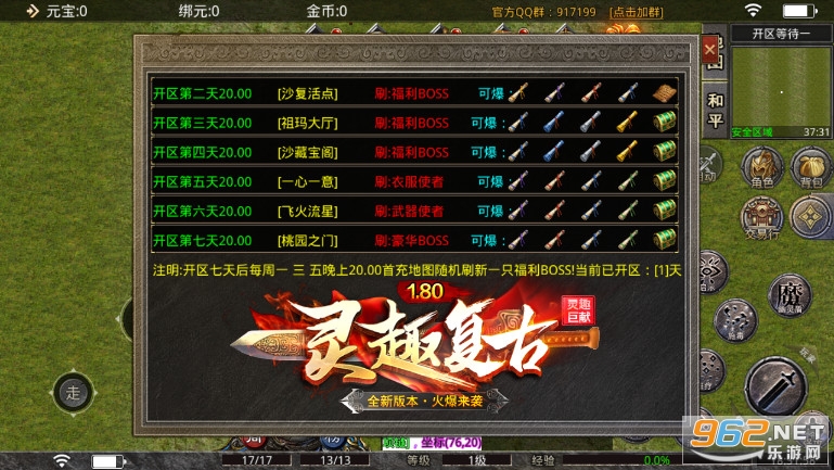 游戏只卖元宝和基础道具,怪物BOSS爆一切,散人首选
