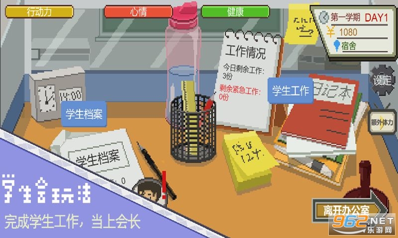 趣味的大学生活模拟游戏,玩家将作为一个大一新生前往学校,可以学习各个科目,可以玩游戏,可以外出等等,但是需要注意一点,如果挂科三门游戏就结束了,喜欢的朋友可以下载试试。