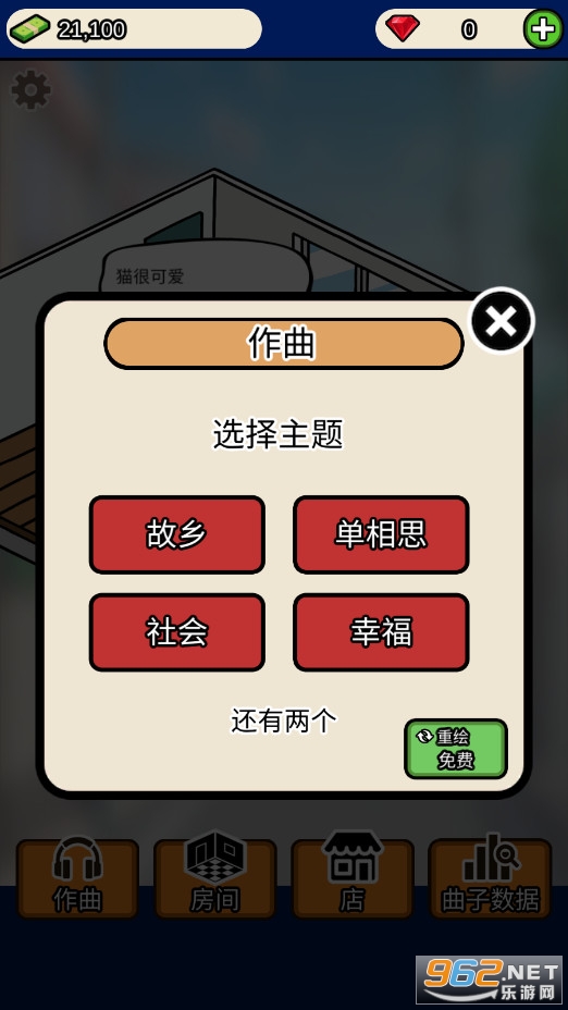 一款非常有趣的模拟经营游戏,游戏中你可以选择不同的主题组合来制作自己的音乐,通过出售音乐大卖来改善自己的生活,游戏中你将不断的获取新的灵感,推荐给喜欢模拟游戏的玩家。