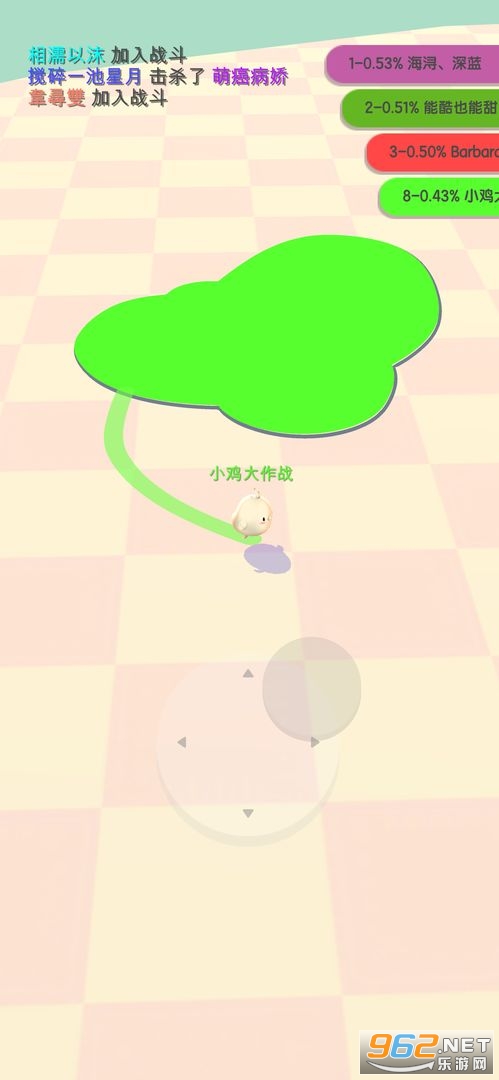 《小鸡大作战安卓版》是一款画面清新的圈地竞技休闲手游,游戏中玩家将控制一只小鸡移动,围成一个封闭的圈即可将圈内的土地占领成为自己的领地,不断的移动圈占土地,注意其他的竞争对手,如果在圈还没有闭合的时候被其他人撞击到挑战就结束了。