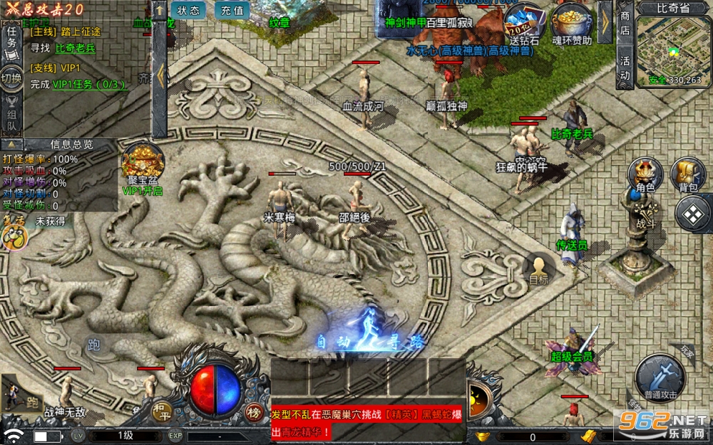 1、万人沙巴克攻城,千人同屏在线PK燃爆激情