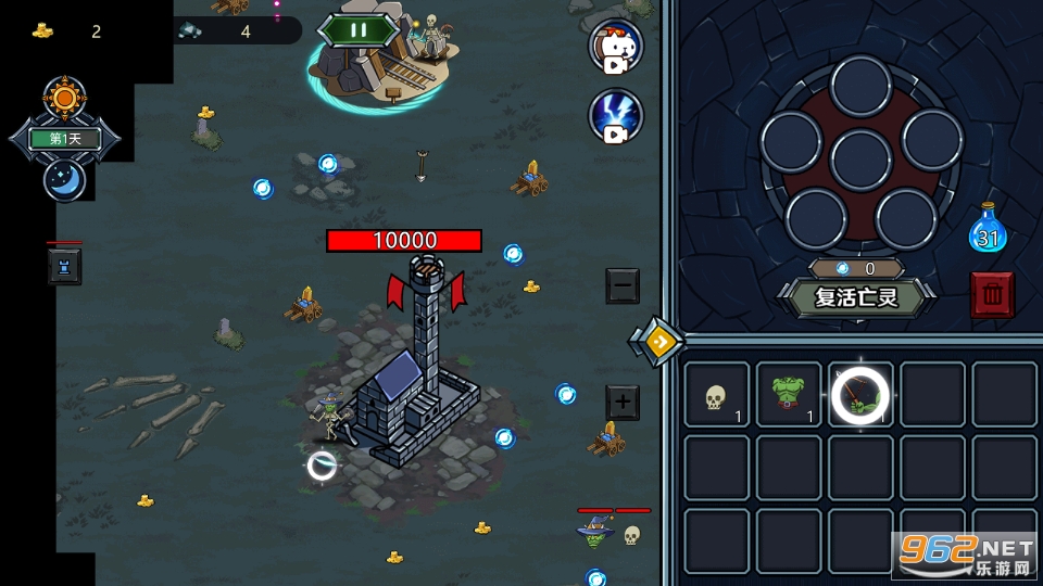 1、面对无尽的敌人,你需要快速打造自己的亡灵士兵,安排他们作战;