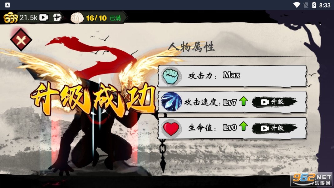 不看广告获得奖励(不断免广告获得大量金币和体力,直接升级技能和武器等)