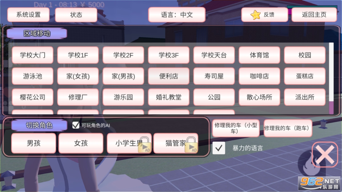 校园模拟器的驾车、喷气背包功能