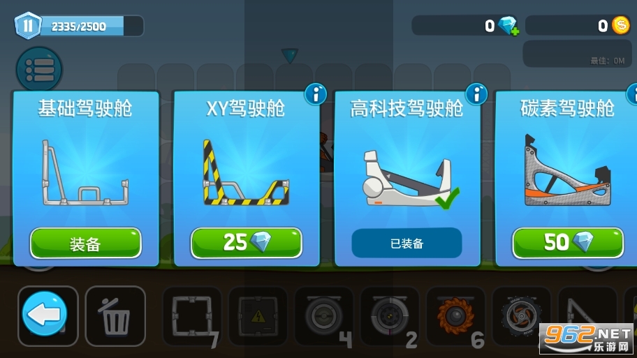 2、游戏中的所有零件都是需要不断解锁的,包括反应堆、发动机、车轮、涡轮等,玩家拥有了这些零件之后才可以组装赛车