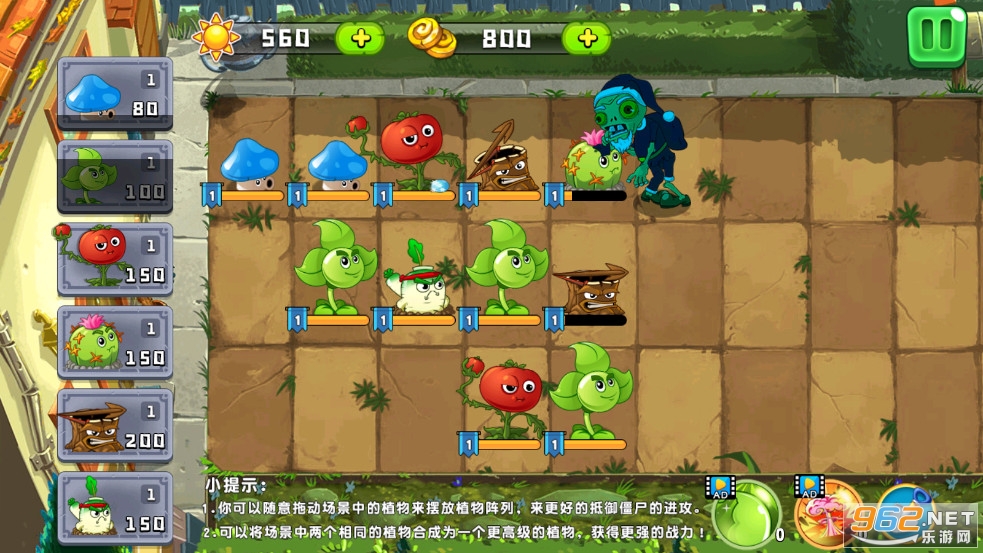 2、趣味的植物合成,可以自由移动植物1位置,让你的阵容变得更加变幻莫测,你确定不来试一下吗;