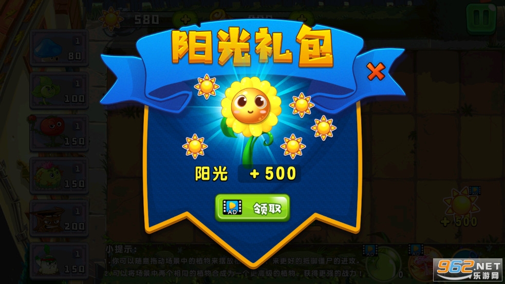 不看广告获得奖励(不断看广告获得大量金币和阳光)