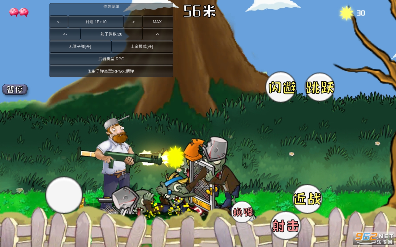 新的挑战模式:无尽模式,道具也增加好多种,左上角那个脑花是戴夫的生命值,右上角的阳光可以在树旁边购买随机道具,无尽模式非常的难,到后期怪也特别的凶狠!