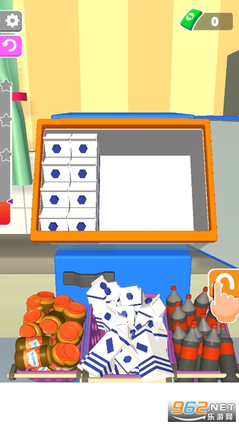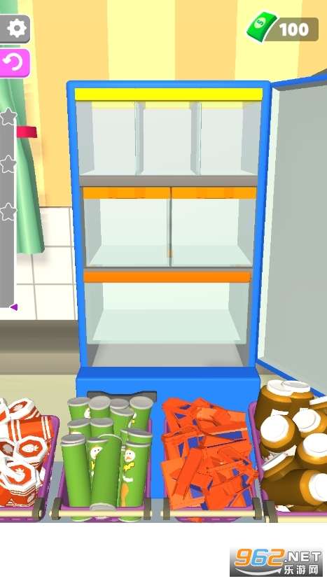 以海外家庭的日常为基础,还原了生活中采购大量物品放到冰箱的设定,通过将所有物品全部放入冰箱的收纳盒中,打造出一个堪比真实体验收纳整理游戏。每个关卡都需要你在将水果饮料及其他用品整齐的码放在收纳盒里,赚取收益开启新的物品。