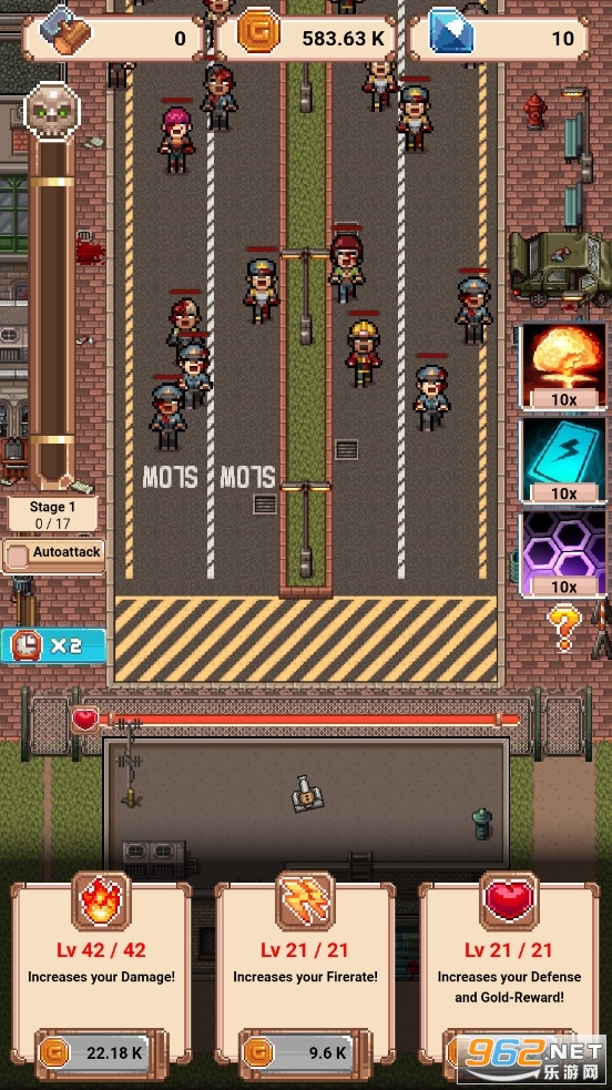 一款有趣的休闲放置游戏,在这款游戏中你将不断的加强你的防御,抵抗僵尸的入侵,同时不断的发展你的避难所,获取更多的资源,得到更多的幸存者,游戏的玩法轻松,推荐给喜欢放置游戏的玩家。