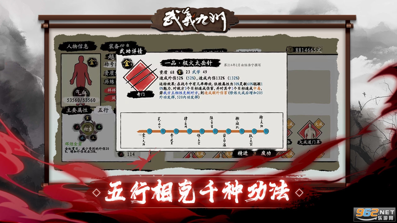 武义九州是一款开放自由的武侠风回合制冒险游戏。看一个初出茅庐的小杂毛,怎样在九州大陆走出自己的舒适圈,开山立派,终成一代大侠。超高自由度,地图全随机,包含采集经营,丹药炼制,武艺切磋,功法修行等多种玩法,给你一个想干嘛干嘛的江湖,开宗立派授业传功,做做神盗劫富济贫、做做巨贾富甲一方,各有各的活法,但求一个问心无愧,未必就要做大侠!