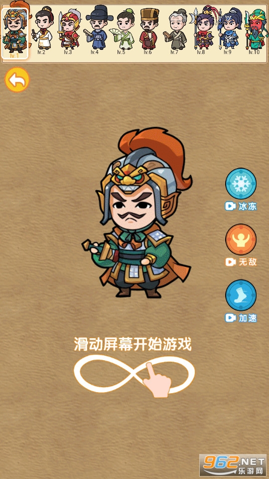 《召唤关二爷》是现在非常火爆的休闲减压小游戏。玩家开局从三国无名小卒开始,不断在游戏场景中通过触碰收集同级别或比自己低级别的角色目标,不断合成升级为更高级的角色。玩法类似合成神龙。游戏途中需要敏捷躲避比自己级别高的目标,从而解锁更多高级角色,最终达到成为三国名将的终极目标。