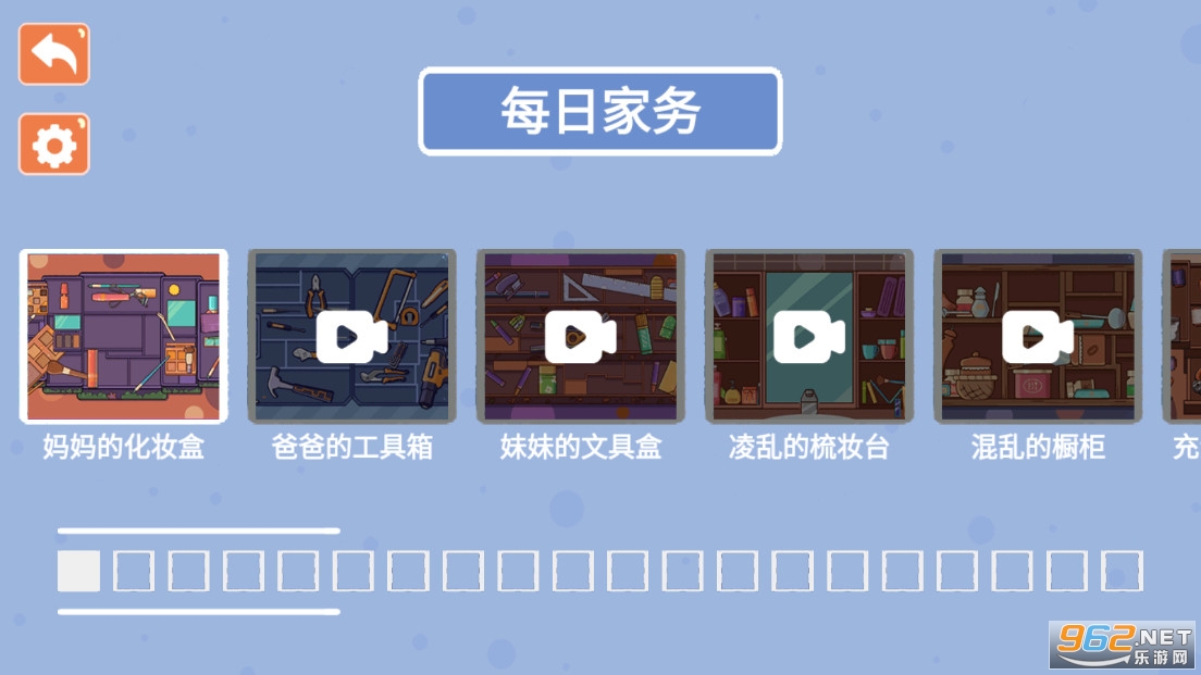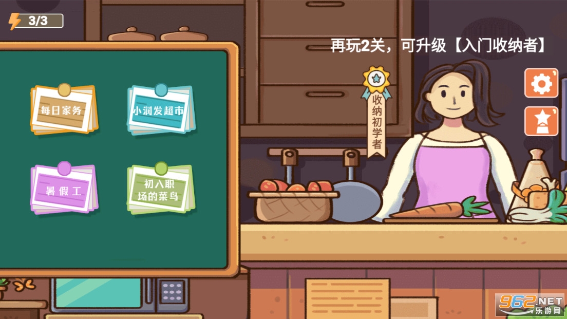 1、开始一系列的收纳挑战,卡通画风打造,玩起来相当的减压;