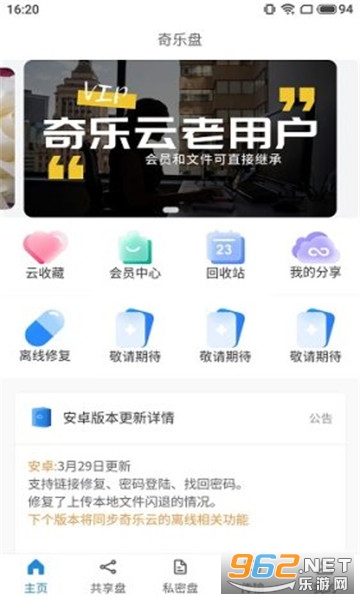 奇乐盘app是一款资源网盘类应用,有着很多的内存空间,可以将不同的文件进行存储哦,同时下载的速度也是很快,使用率极好,只需要轻松的建立一个帐号就能使用了,不退速度!