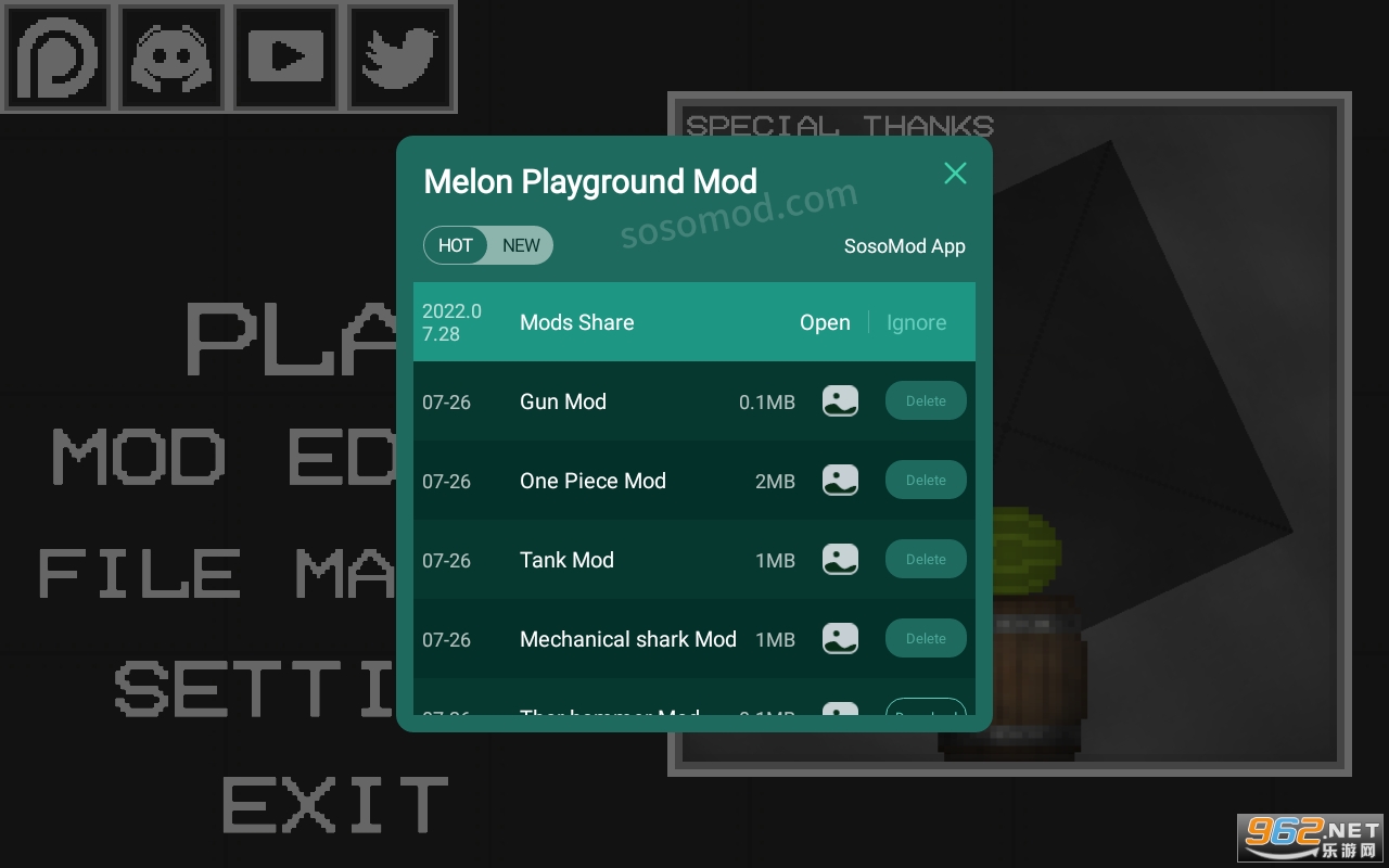 《甜瓜游乐场内置模组》是一款经典的受到广大玩家欢迎的沙盒模拟游戏,游戏的自由度很高,可以自由的放置各种物体然后进行自由的玩法,本次带来的是内置模组菜单,打开菜单即可安装对应的模组,不要一次性安装太多,模组可以自由的删除和下载安装,感兴趣的亲们赶紧下载吧。
