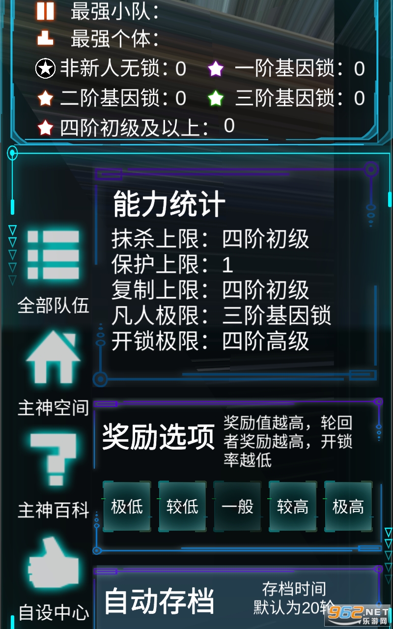 一款不肝不氪的文字游戏,游戏玩法简单,至于能不能打通关,还是要有一定运气成分的。开局时有很多队伍,他们的生与死全都由你掌控,每个人物都有他们的档案,至于培养谁,也由你决定。