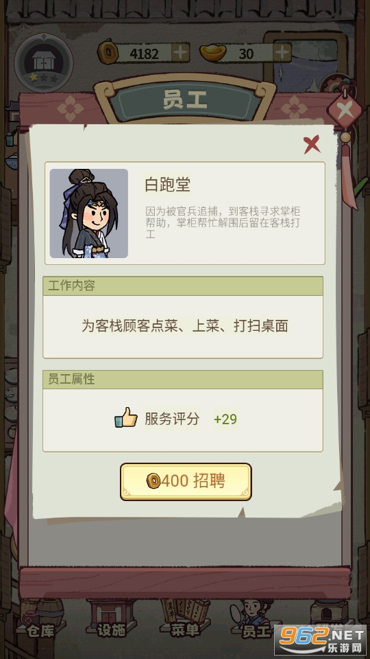 2、招聘多种员工,满足客栈不同的经营需求。