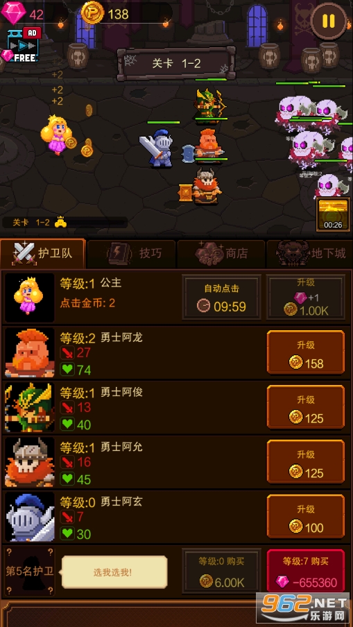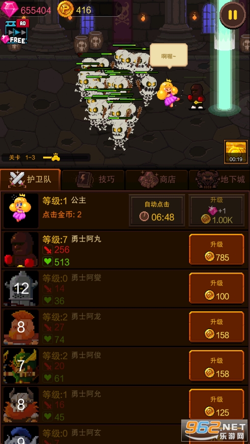 比较好玩的一款像素类挂机游戏,开放式的地图,丰富的游戏关卡,不同的角色,玩家可以自由组合英雄,在游戏里面不断地战斗,解锁更多的武器和装备,体验超爽的战斗乐趣,操作简单!