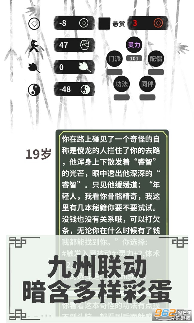 一款以伏魔人偶为主题的人生模拟器游戏,在这款游戏中采用了文字的方式来体现你在这个全新世界中的冒险,游戏中你将探索神秘的九州世界,不断的提升自己的修为,游戏中有着丰富的事件和分支,推荐给喜欢人生模拟器游戏的玩家。