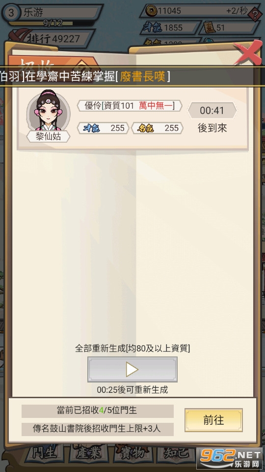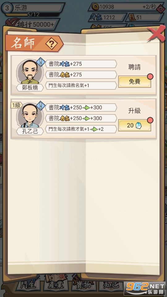 3、模拟古代开书院的休闲游戏,在游戏里,你可以自由招收资质各异的门生。
