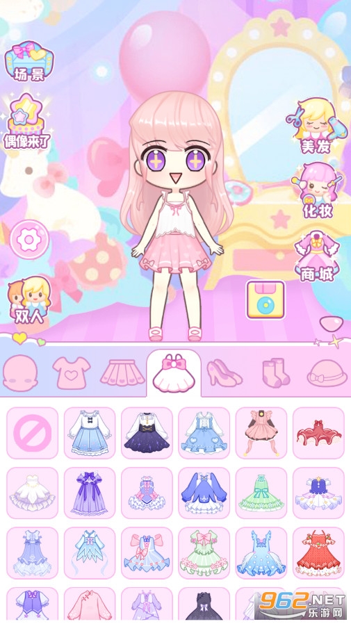一款非常可爱风格的换装游戏,游戏解锁了所有的服饰你可以自由的使用,但是进入一些界面的时候还是有一点广告,软件的画风非常的可爱,还有着多种专属套装,还可以创造偶像完成演出,推荐给喜欢换装游戏的玩家。