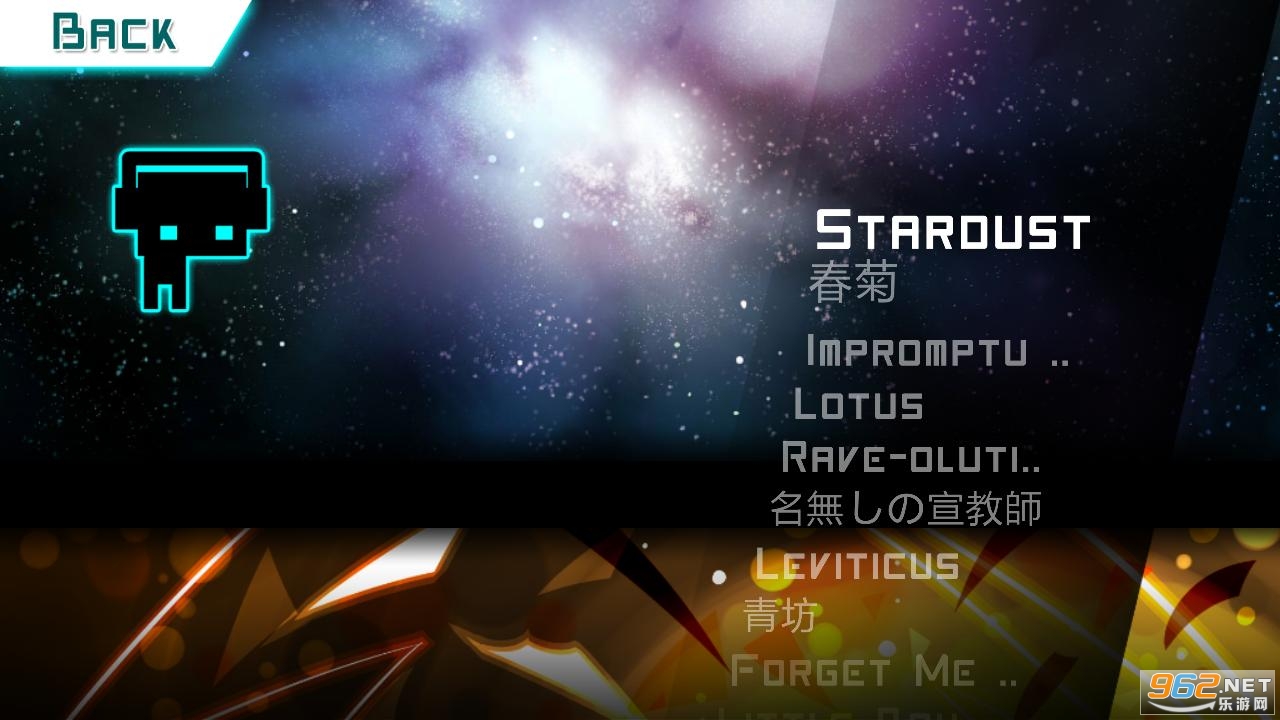 现收录超过30首由香港作曲家亲自打造的原创音乐,音乐风格目前偏向电子音乐为主包括Trancecore、Hardcore、Glitch、Oriental、Chiptune等、未来更新将会增加更多多元化的音乐风格包括Dubstep、和式电音、Psytrance、Breakbeat等。游戏内包含过百个谱面,由入门的Basic级渐进至资深玩家也不感乏味的Hard级、什至超越Hard的自定义超难度谱面”Mega”、”Giga”级。