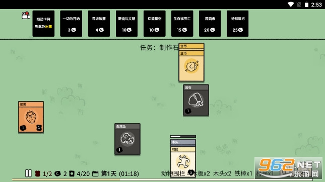 2、数量:玩家在倒计时结束的时候,场上的卡牌不能多余上限,多出来的卡必须进行出售。(可以通过建造棚子提升卡卡牌数量上限)