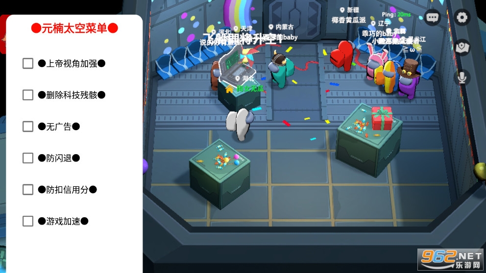 《元楠太空杀13》是一款画面精致的天空版狼人杀游戏,游戏中玩家可以选择多种地图去冒险,可以随机内鬼、船员不同的身份,内鬼需要去击杀船员,破坏飞船,船员需要找出内鬼阻止一切破坏,游戏已修改,加入来的作弊菜单,可以自由开启想要的功能。