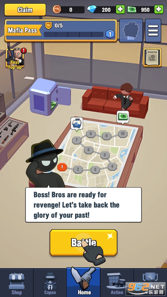 《黑道法则》是一款清新卡通风格的休闲放置闯关游戏,在这款游戏中玩家将不断的获取更多的钞票,招兵买马,不断的训练你的手下,进行一系列的地盘争夺,游戏的操作简单容易上手,还有着超多的挑战等待着你,赶快下载体验吧!