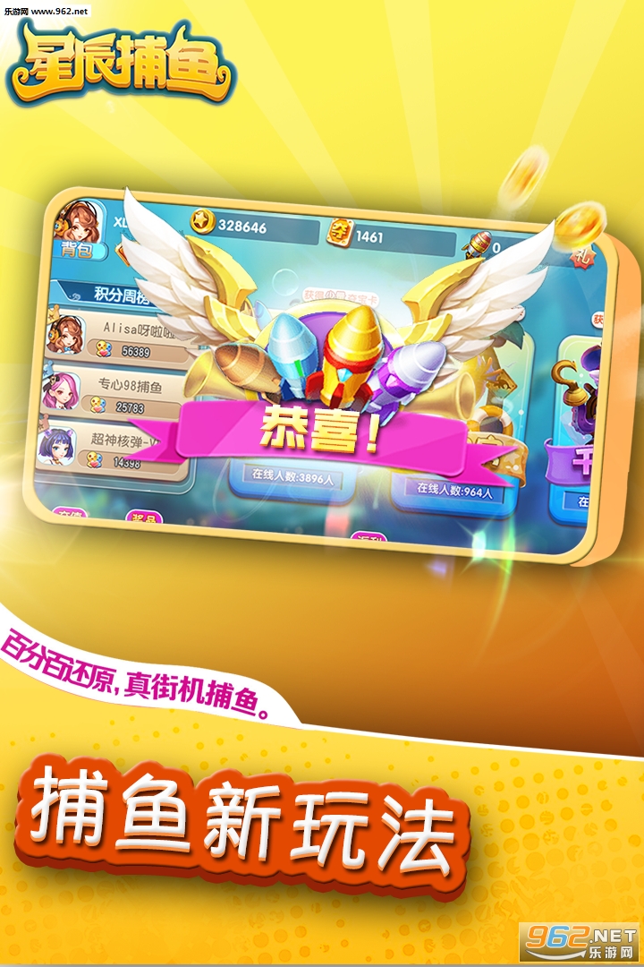 满屏爆金体验加强,千炮渔场新玩法,经典还原捕鱼机,超高倍率轻松赢,全天稳定不打烊;多人联网在线,享受真正联网捕鱼的乐趣!