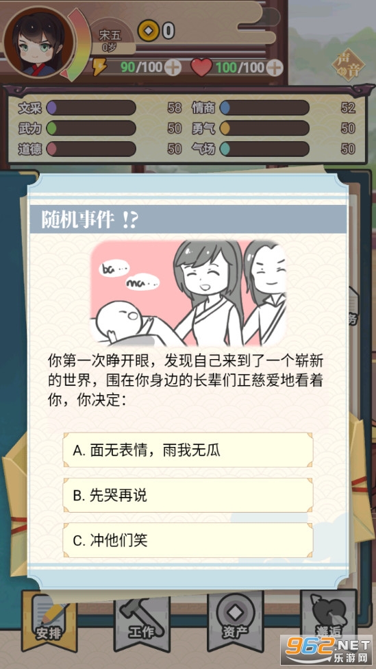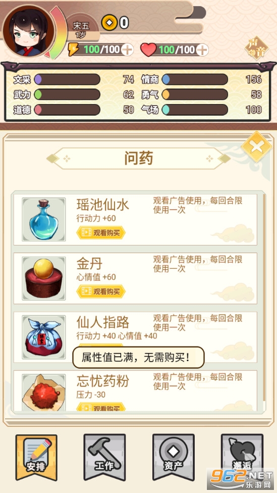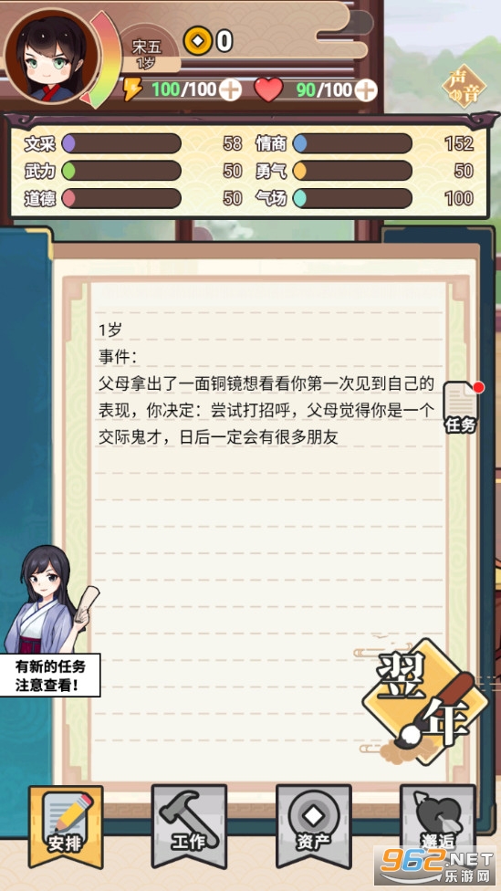 2、玩家可以选择不断提升自己自己的属性值,达到琴棋书画样样精通,