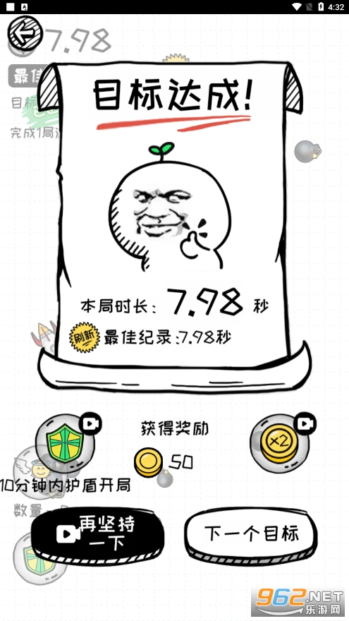 《再坚持亿下游戏》是抖音上很火的一款虐心小游戏,采用了手绘风的设计,玩家可以在游戏里面选择不同的角色扮演,灵活的躲避刀,火箭,炸弹等武器的攻击,风骚走位,想办法坚持更久,坚持越久分数越高,还有超多魔性道具,丰富的奖励可以领取哦!