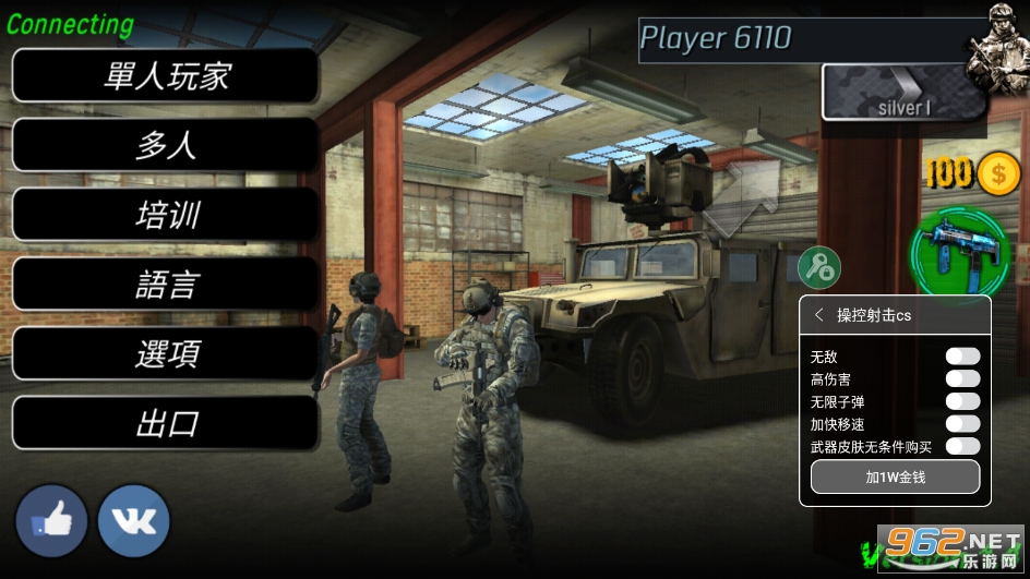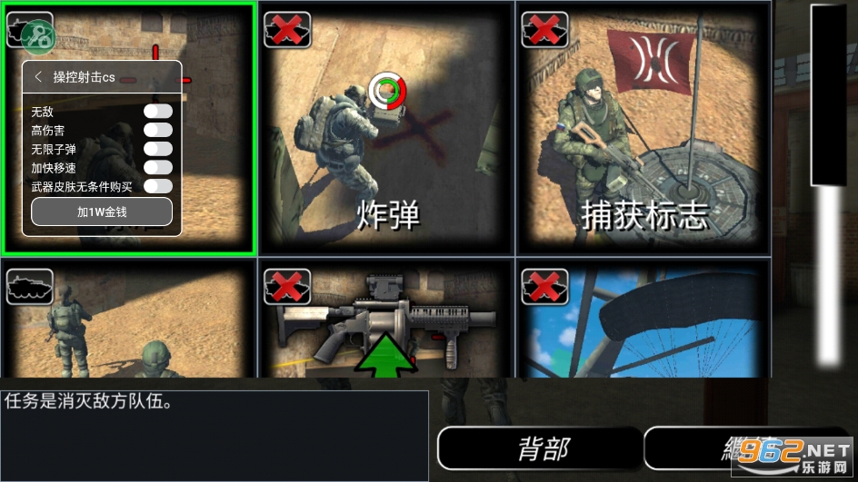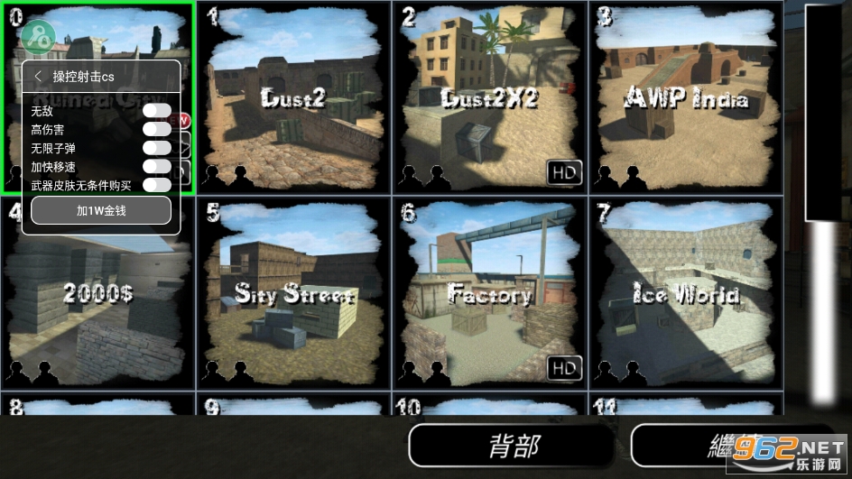 作弊菜单:无敌,高伤害无限子弹,加速快移,武器皮肤无条件购买,加1w金钱