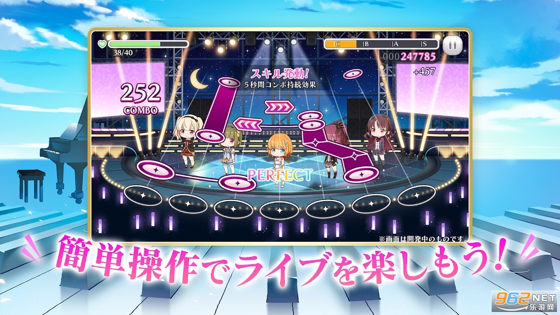 1、动感的音游玩法,玩家需要根据节奏和韵律来进行点击,完成演出,获得更高的评价。