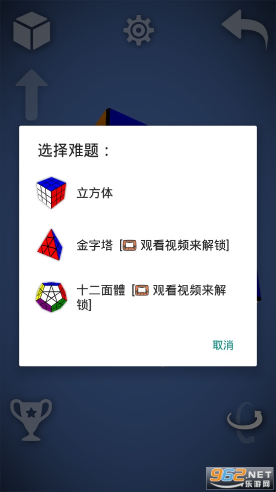 提供最热门的谜题:立方体、金字塔、十二面體