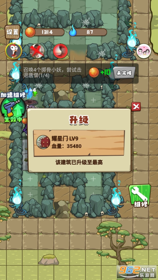 3、妖精方需求建造炮台防御唐僧的进攻,同时建造月光宝盒逃出生天;