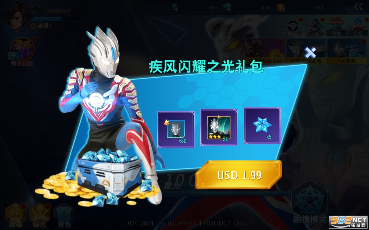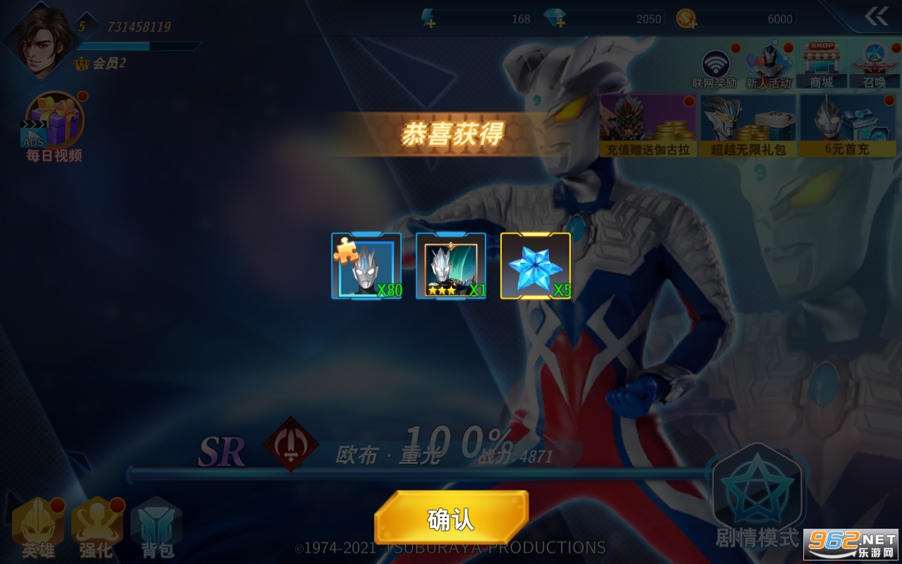 1、双子奥特曼火爆登场,酷炫的技能上线,通过各种模式的挑战秒杀对手。
