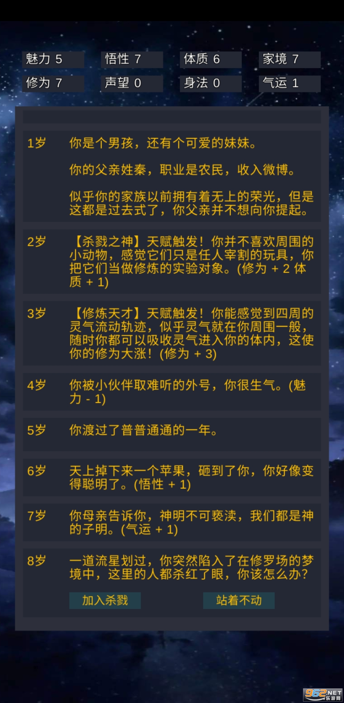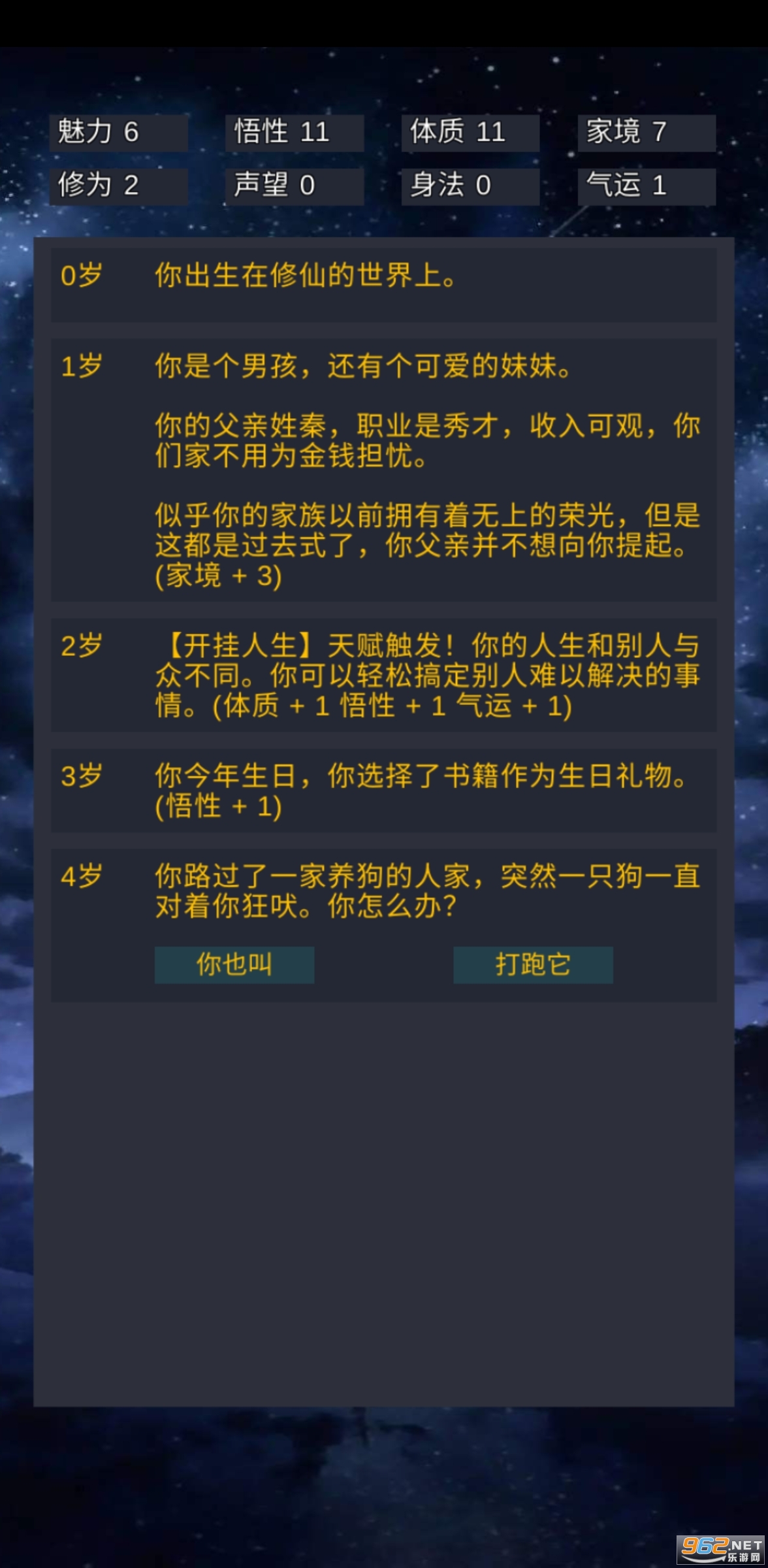 你可能出生在富豪之家,也可能出生在贫困家庭,有可能会获得不同的修仙天赋,也有可能会经历重重困境,游戏的最终的目的是渡过雷劫,飞升仙界。