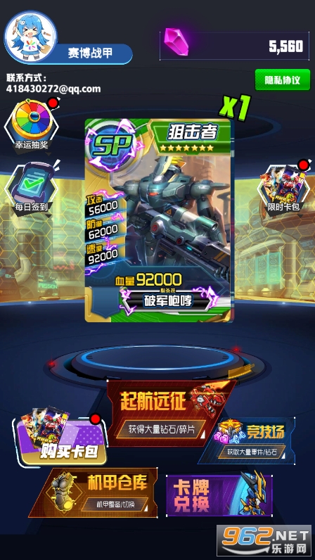 趣味十足的卡牌竞技游戏,其核心的元素抽卡,当然是机甲类型的,多个不同的玩法都需要你合理的进行配置,游戏中你可以去完成更多竞技对决的挑战,这里的每一个内容都是精彩的,你要参与到更多的挑战中。