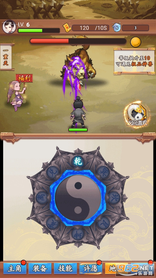 玩家将扮演初觉醒仙力的小道士,下山除妖,并且强化自己的实力,一路打到九重天,最后登天成仙的历程。