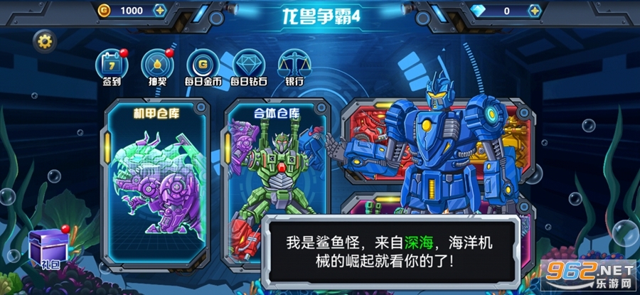 龙兽争霸4深海狂魔是一款主打机甲恐龙合成进化的回合制小游戏,玩家可以获取不同的机甲巨兽,给他们武装升级进化合体,然后去对战。