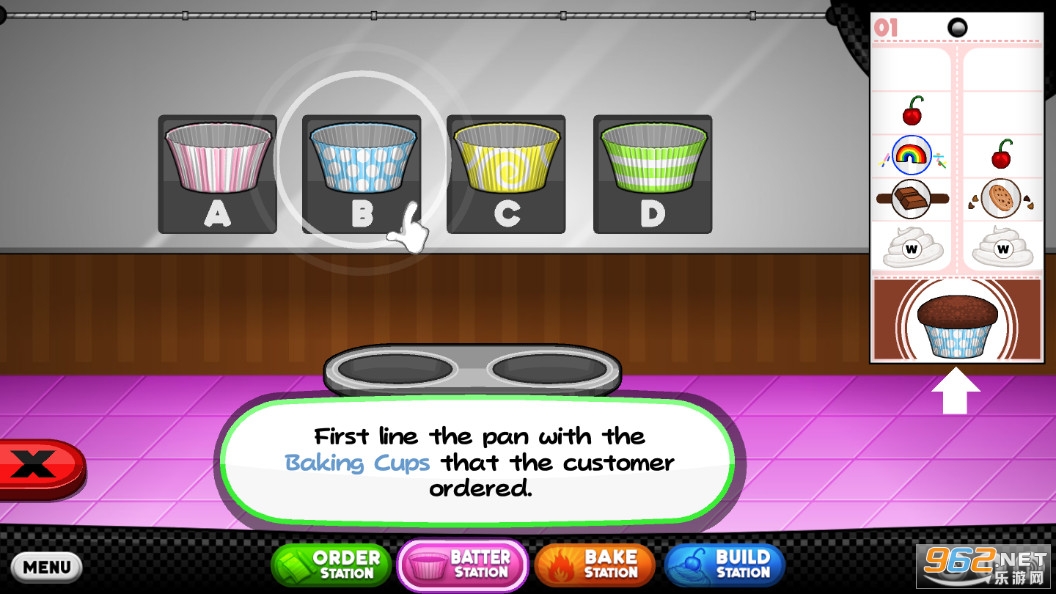 面糊烘烤加油站 - 我们重新设计的连击和烘烤站的小屏幕,让您可以轻松地添加衬里,倒入面糊,烤蛋糕像蛋糕高手!