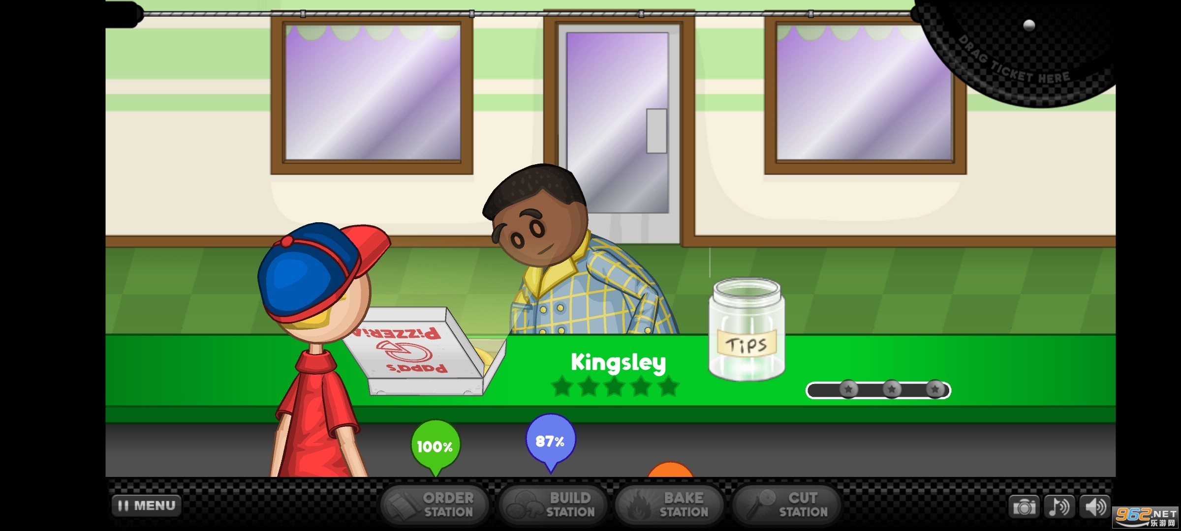 爸爸路易的美味比萨现在可以送货了!当客户打电话要求送货时,聘请送货员接听电话。披萨做好后,他们会把披萨直接送到顾客家!