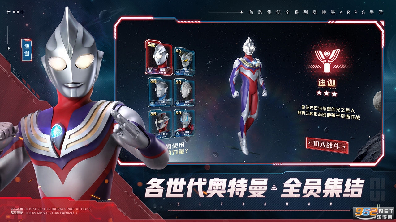 《奥特曼集结最新版》是由中手游推出的奥特曼系列动作游戏,在这款游戏中玩家将和全部的光之巨人们一起进行冒险。你可以操作你喜爱的奥特曼在战场中进行战斗,还有着华丽的战斗场景,现在就来下载试试吧!